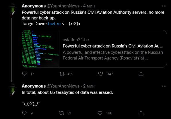 A powerful and effective cyberattack on the Russian Federal Air Transport Agency (Rosaviatsia) infrastructure that took place on Saturday morning has erased all documents, files, aircraft registration data and mails from the servers. In total, about 65 terabytes of data was erased. The news became known on Monday morning, the agency’s official website (favt.ru) went also down.